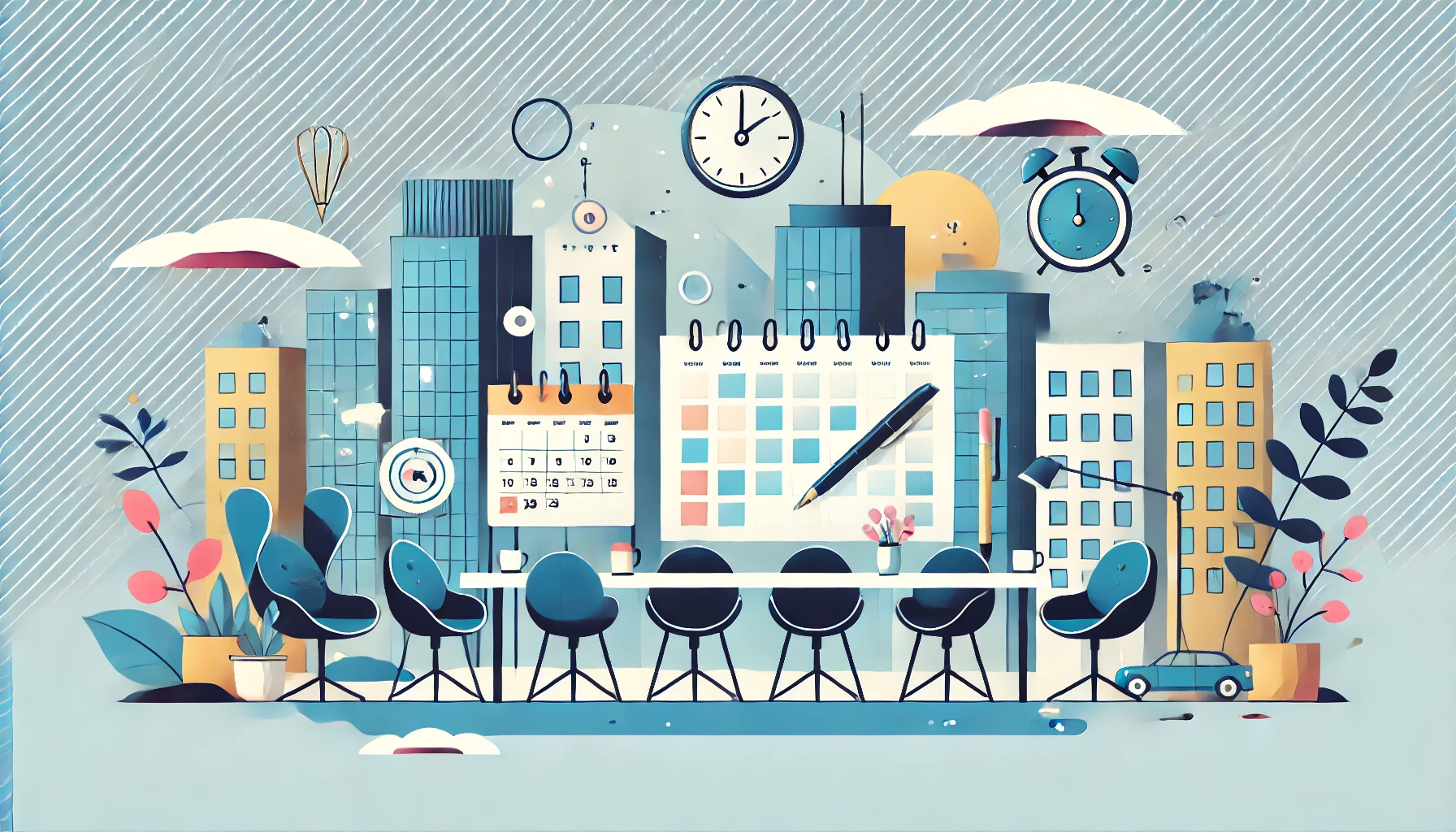 DALL·E 2025-01-06 23.10.50 – Een professionele en uitnodigende banner voor een uitnodiging. Het ontwerp toont een vergadertafel met stoelen, een kalender en subtiele iconen zoals